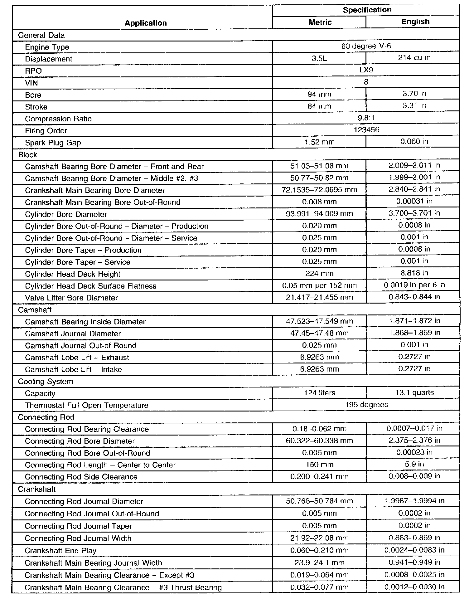 Engine Mechanical Specification