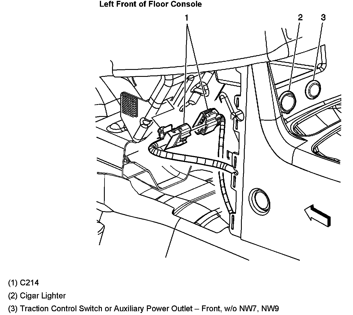 Left Front Of Floor Console: