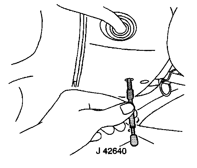 1. Insert J 42640 into the steering column access hole in order to lock the steering column. This will maintain the correct orientation.