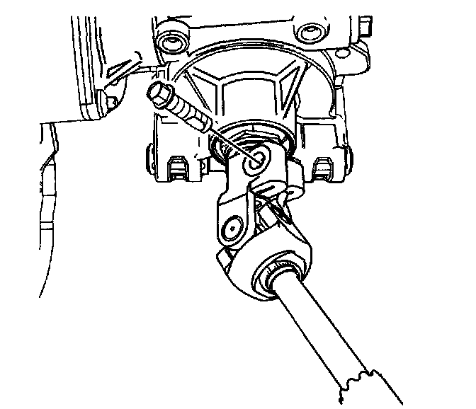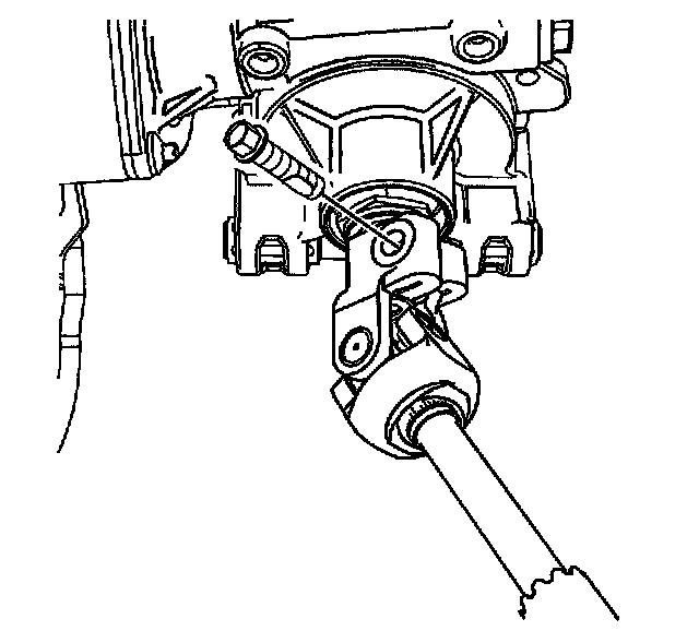 7. Remove the intermediate shaft pinch bolt at the steering column shaft. Discard the pinch bolt.