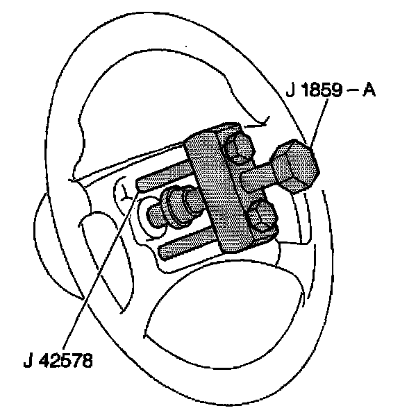8. Remove J 42578 and J 1859-A from the steering wheel.