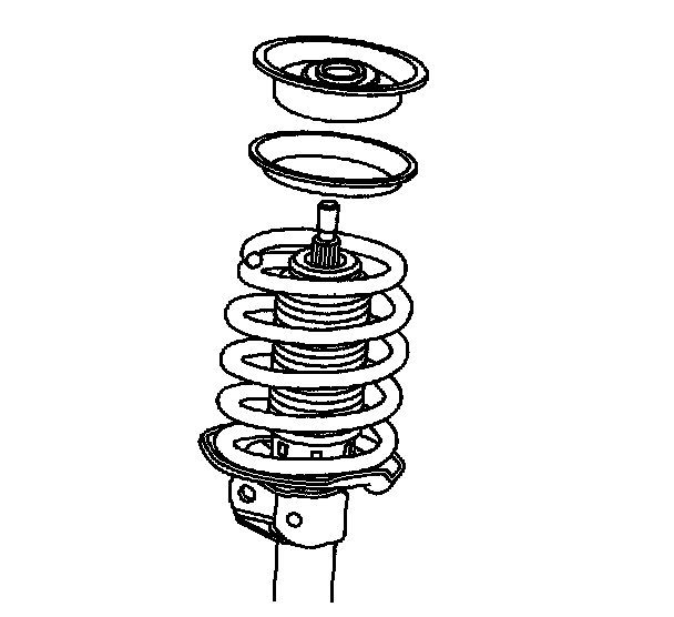 8. Remove the upper spring seat and insulator from the spring and the J 45400. Inspect for damage and replace as necessary.