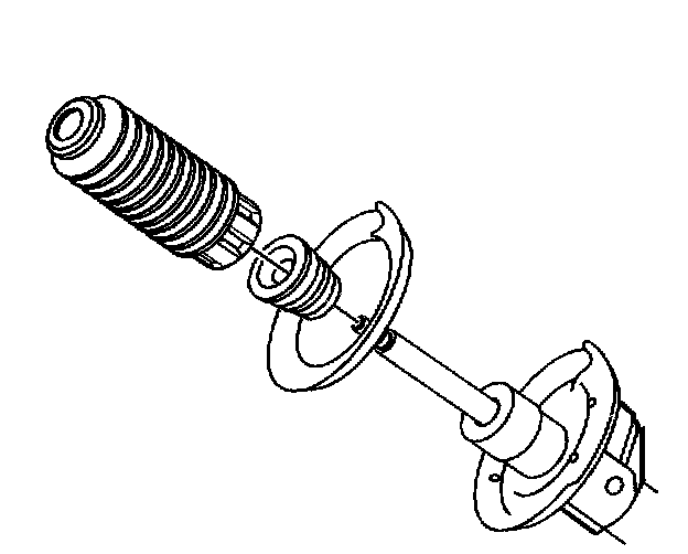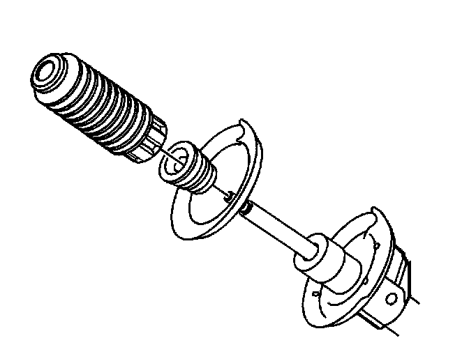 10. Remove the dust shield and jounce bumper assembly from the strut shaft. Inspect for damage and replace as necessary.