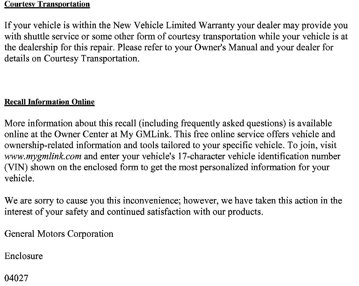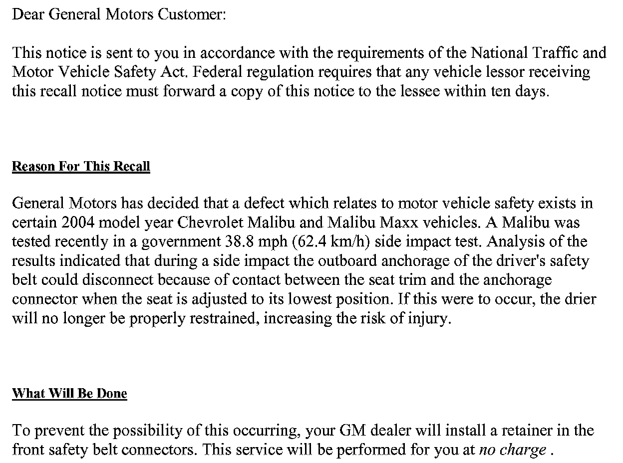 Recall - Driver's Seat Belt Anchorage Defect