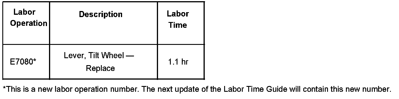The steering column tilt/telescope wheel lever is now available for service as a separate part. The lever was formerly available only as part of the entire steering column. DO NOT replace the steering column if the tilt/telescope wheel lever requires replacement.