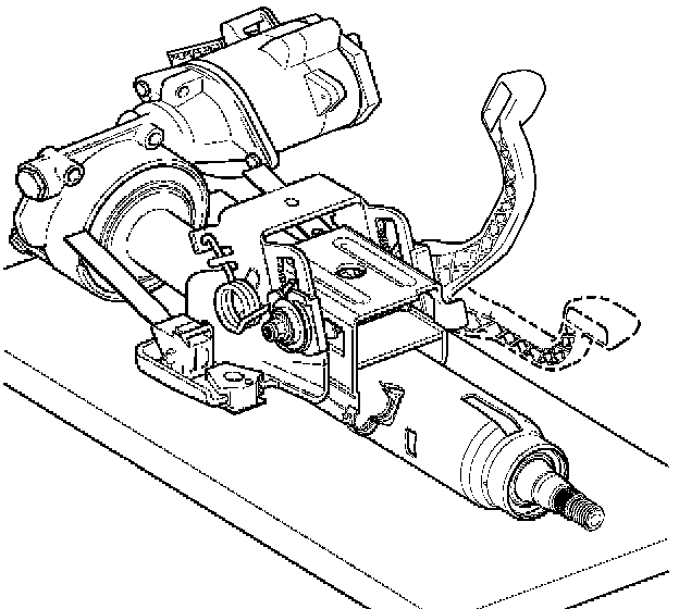 Once the steering column is lowered, the column is extremely susceptible to damage. Leaning on or pushing down on the column will result in damage to the intermediate shaft boot seal and could cause the jacket to bend or deform.