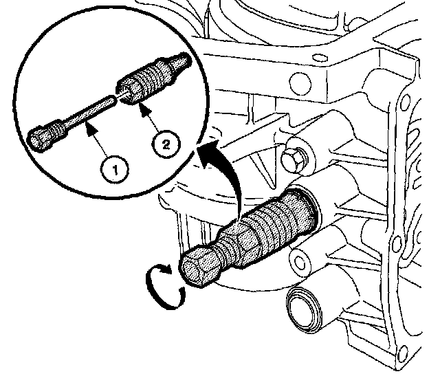 7. Insert the forcing screw piece (1) of the J 45201 into the collet (2).
