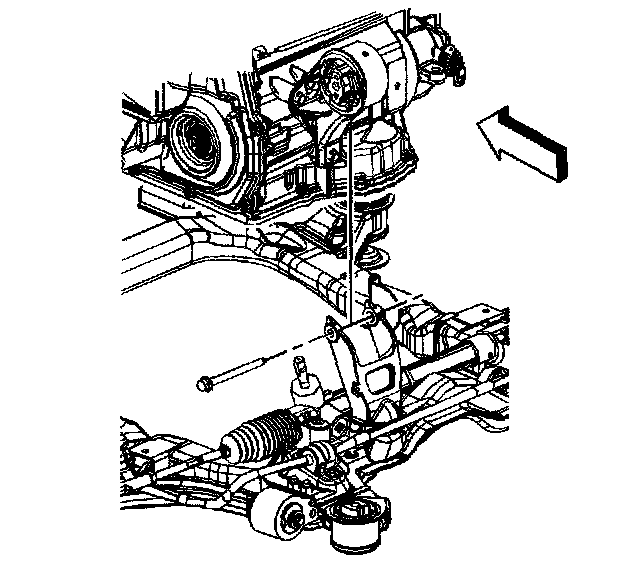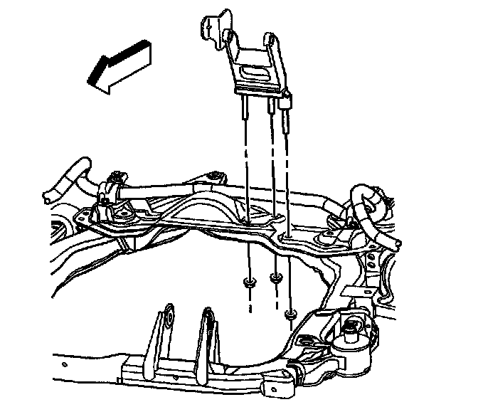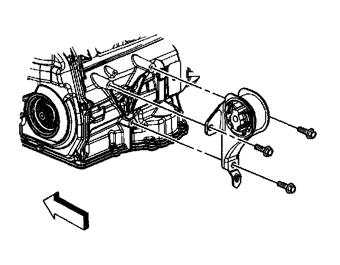 8. Remove the transmission mount and bracket through the left side of the vehicle.