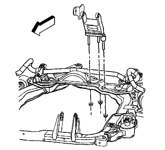 1. Install the transmission mount and bracket through the left side of the vehicle.
