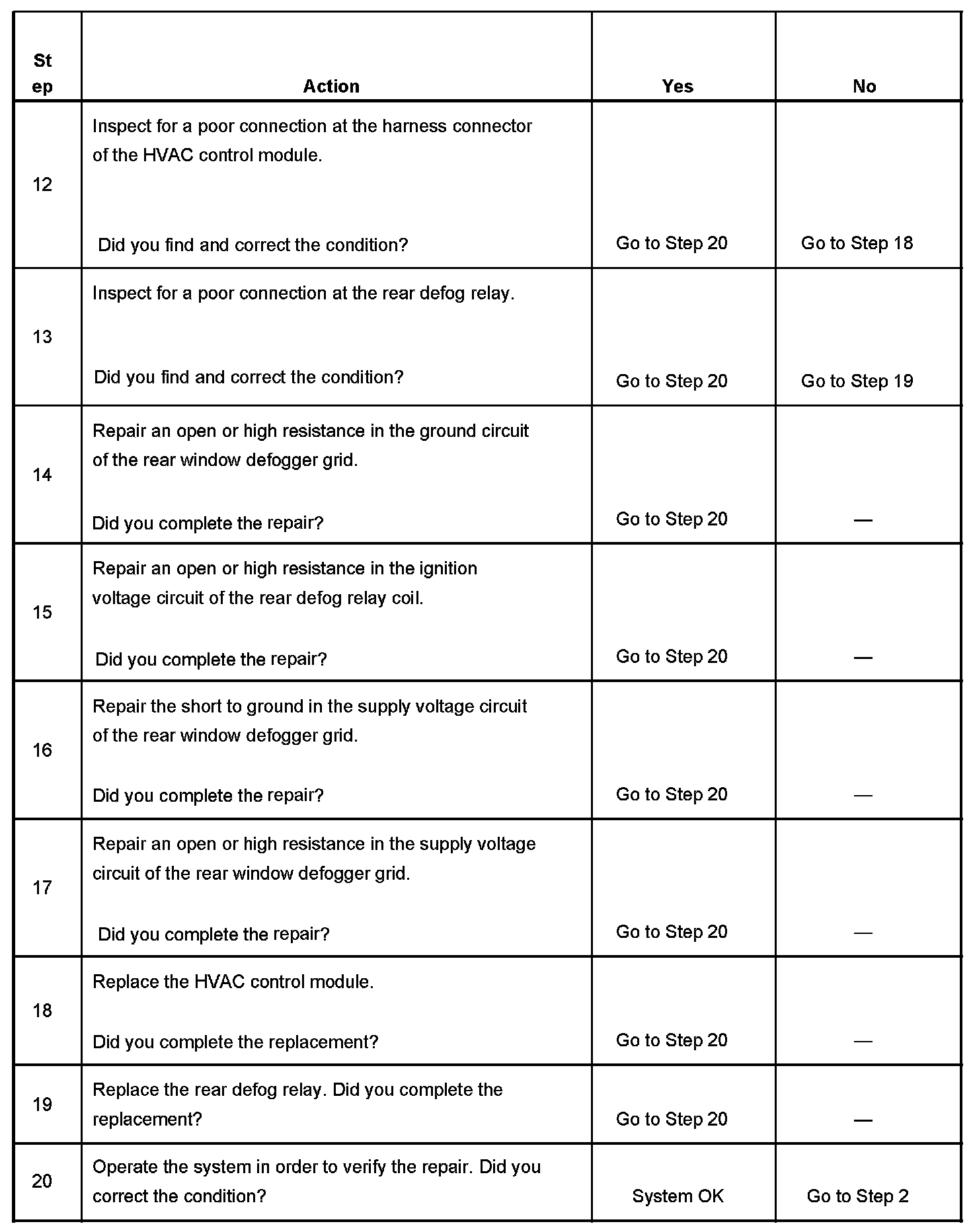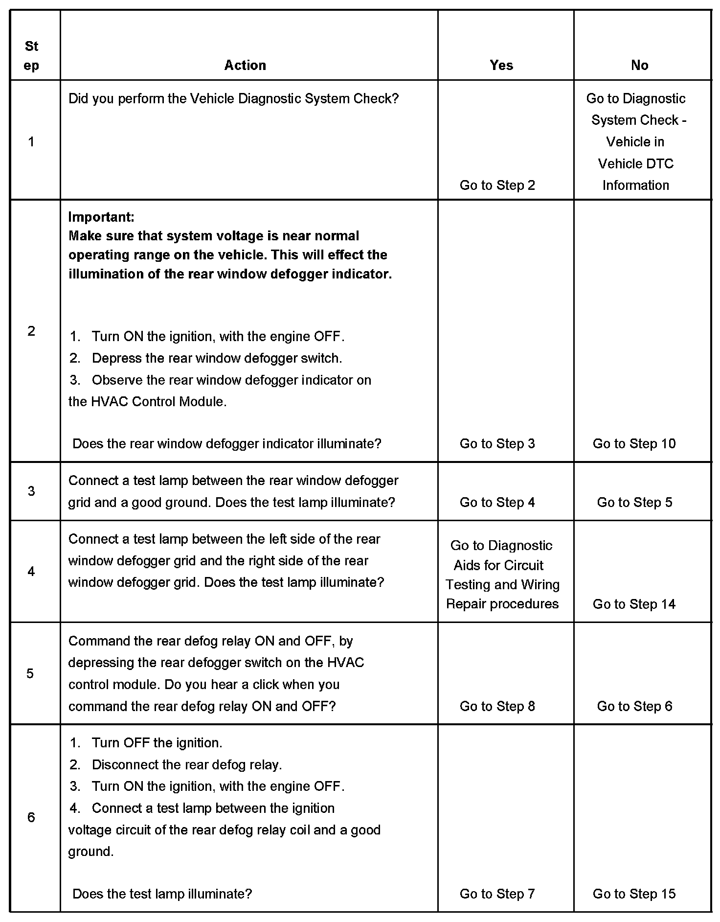 DEFOGGER INOPERATIVE - REAR WINDOWTEST DESCRIPTION
