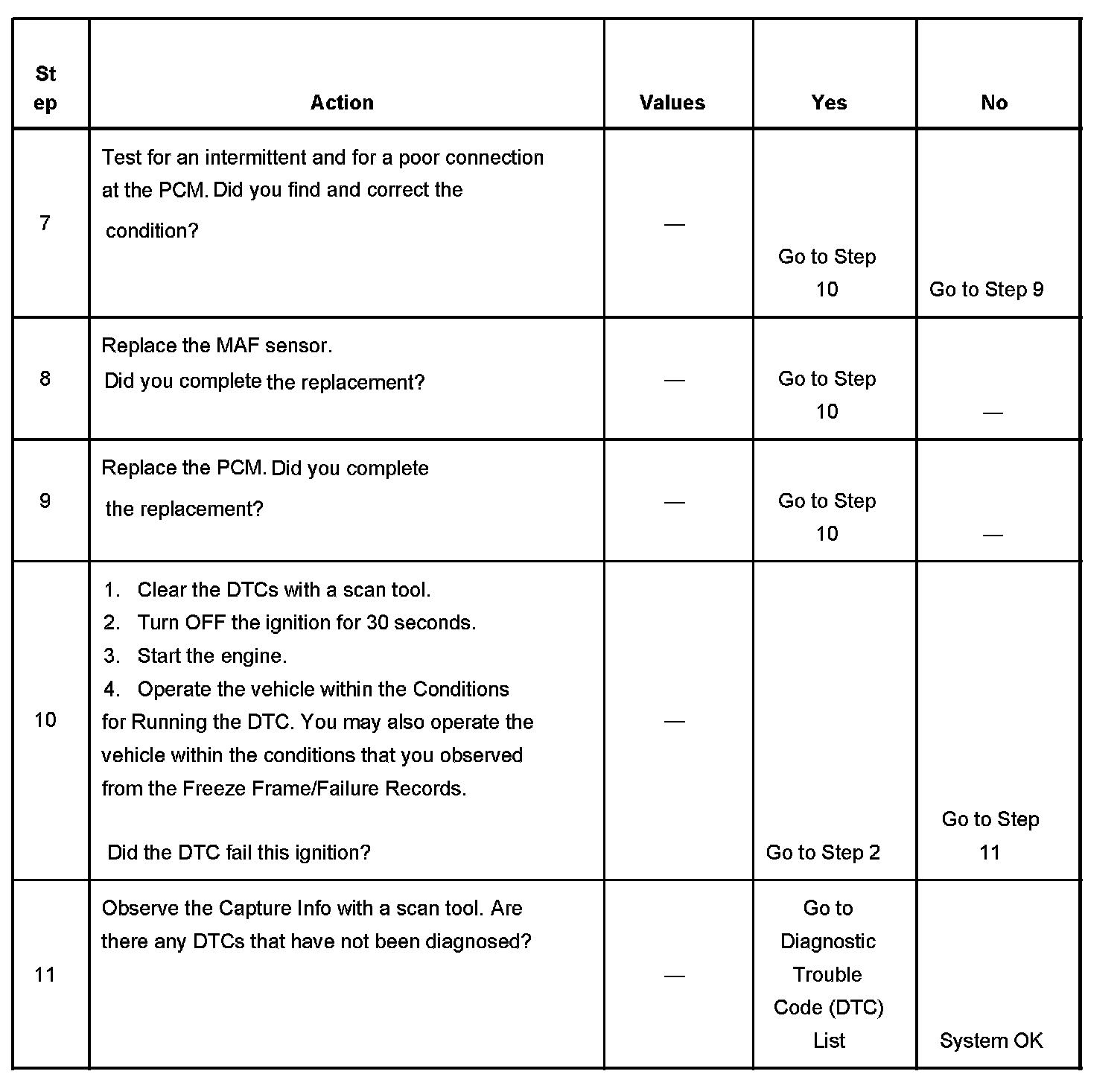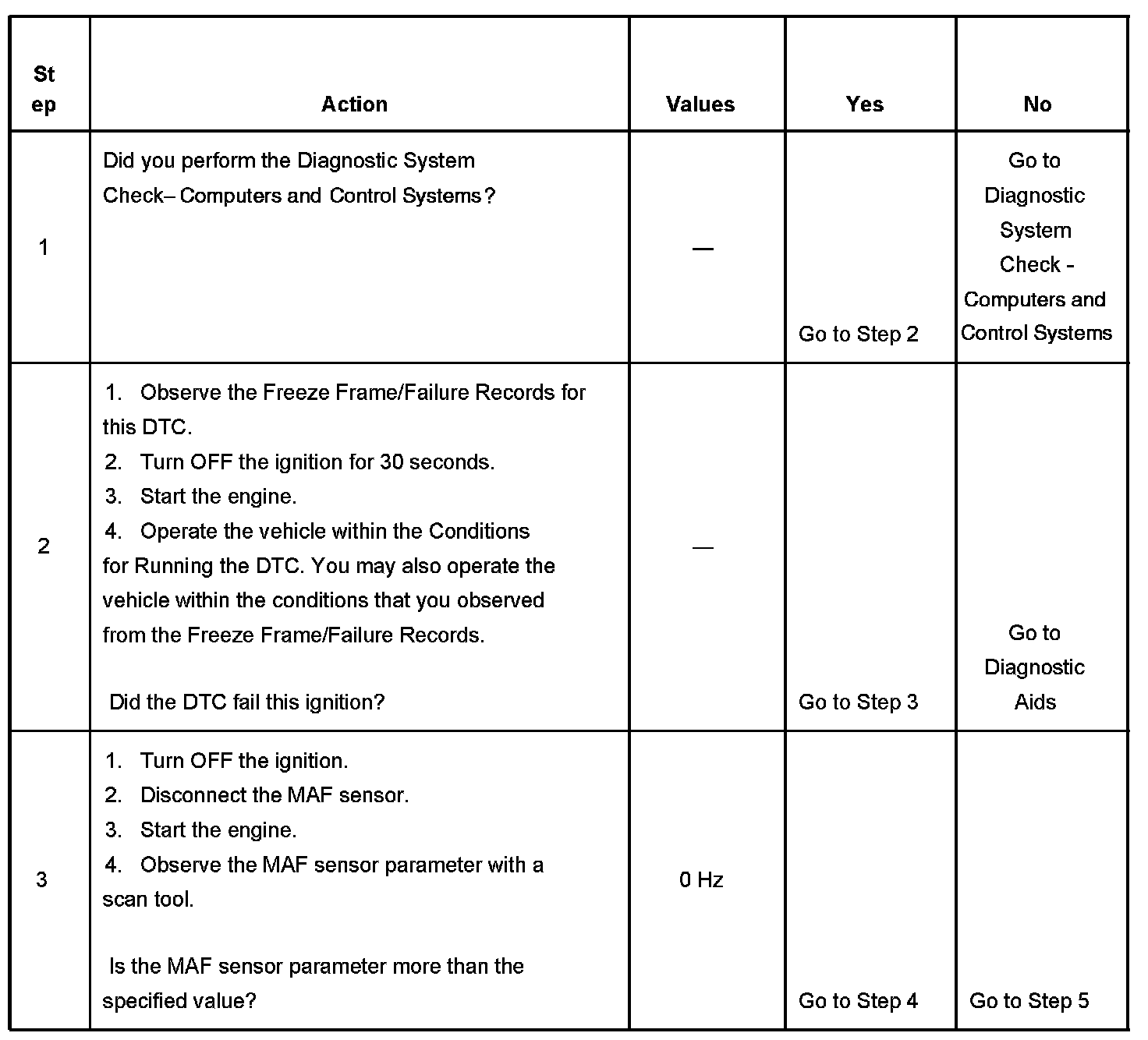 - A poor connection in the ignition 1 voltage circuit of the MAF sensor may cause this DTC to set.