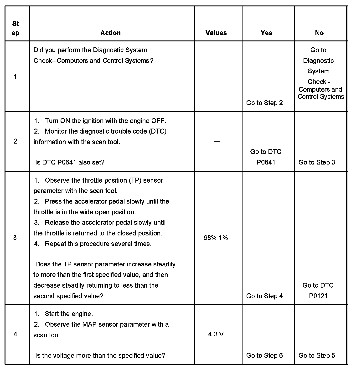 3. This step tests for improper throttle position (TP) sensor operation.