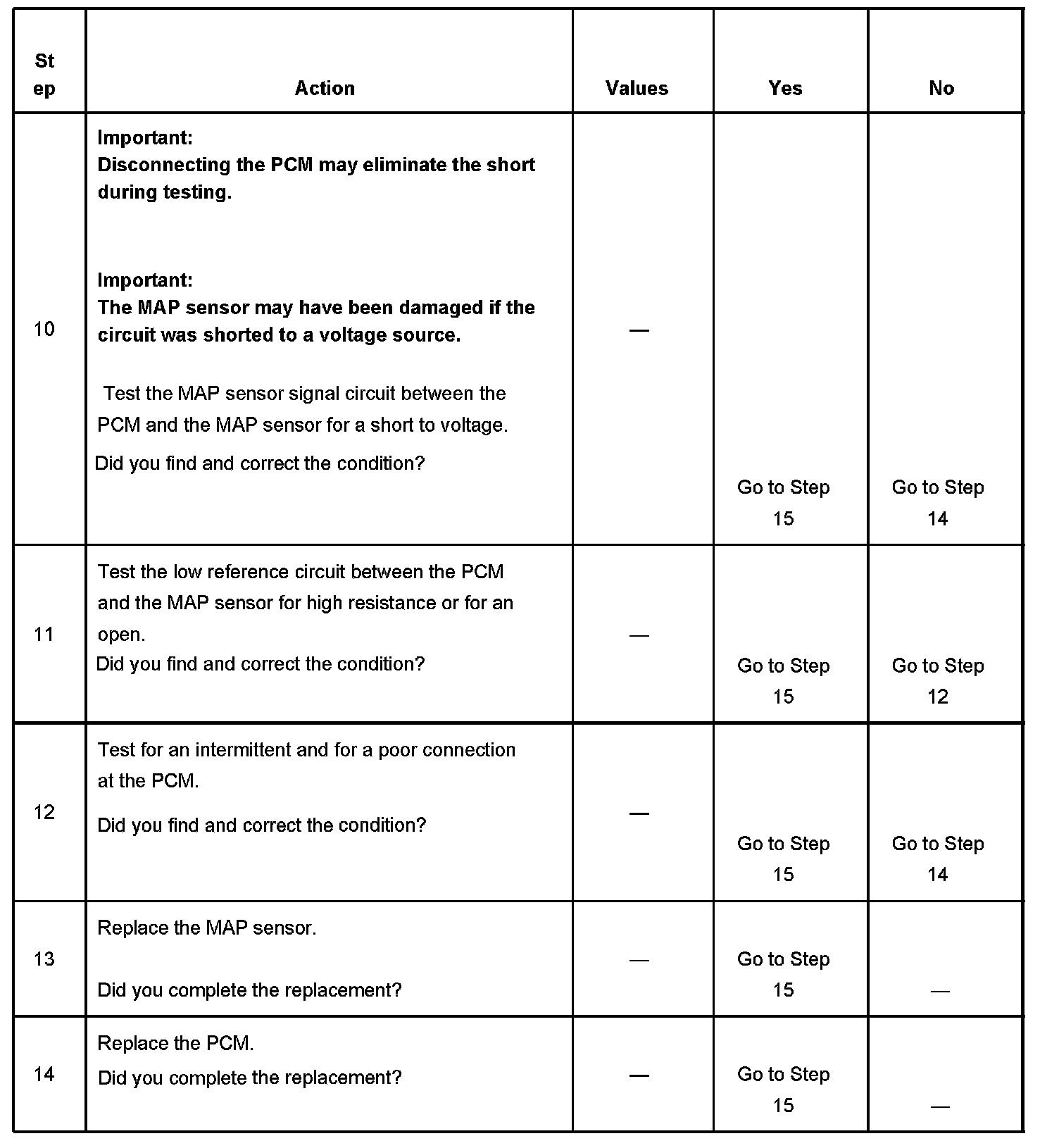 The number below refers to the step number on the diagnostic table.