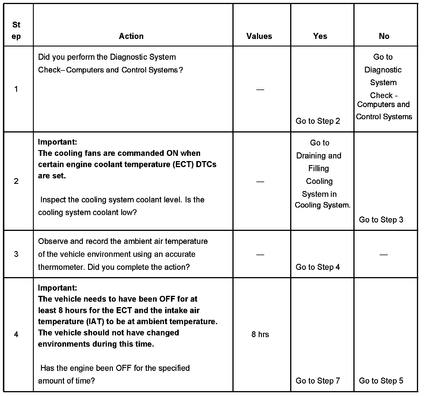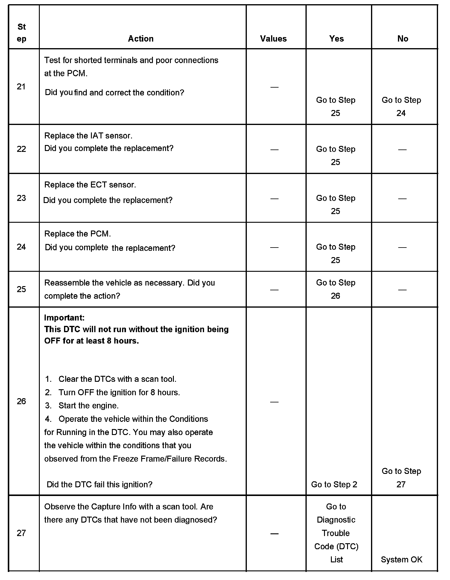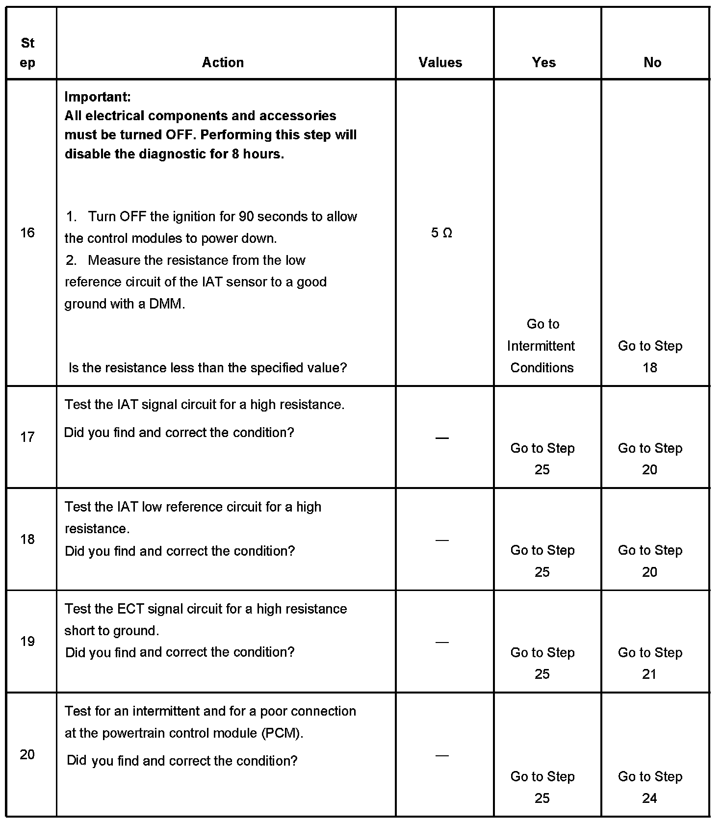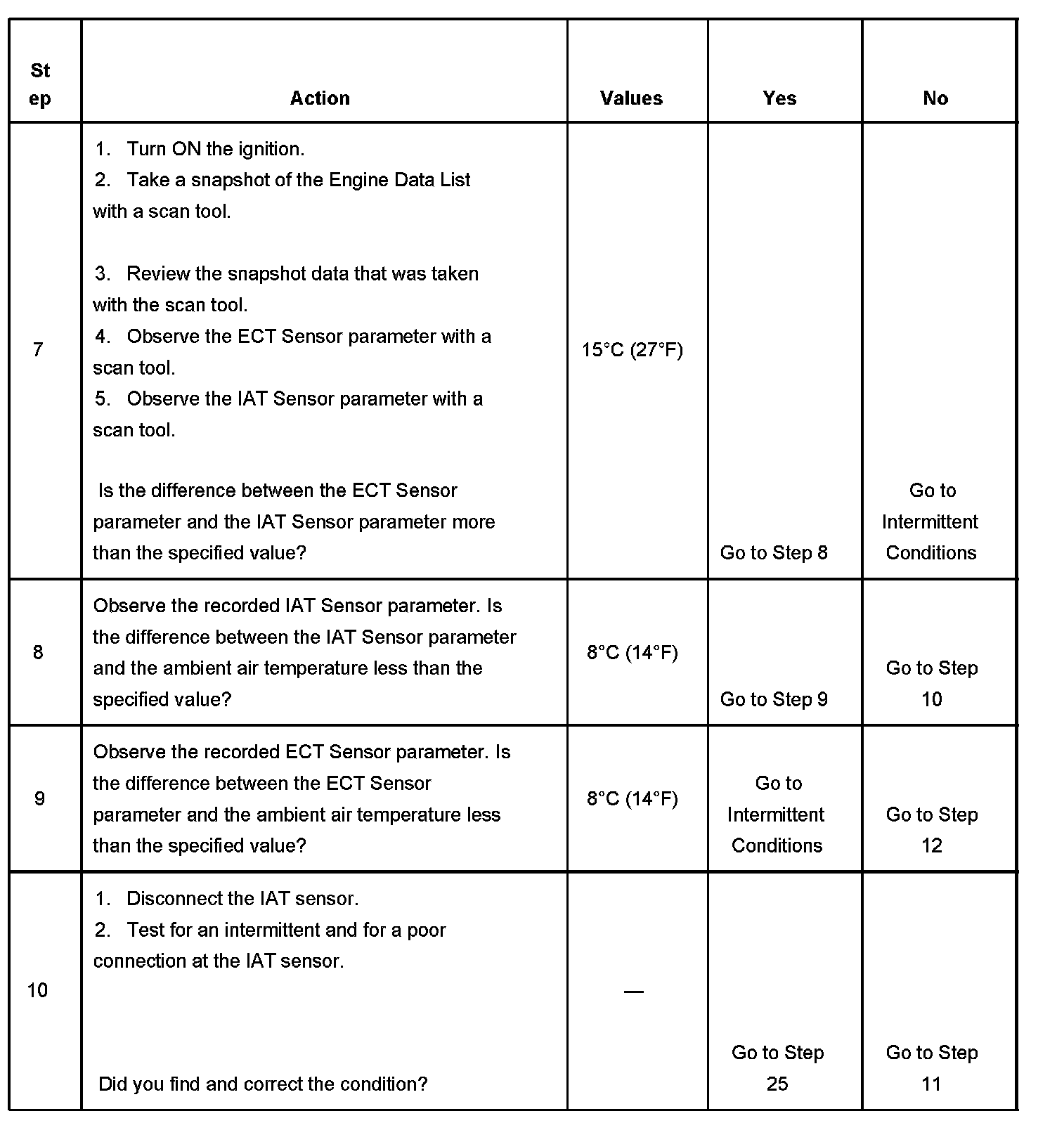 - The time spent cranking the engine, without starting is more than 5 seconds with a temperature difference between the ECT sensor and the IAT sensor of more than 15°C (27°F).