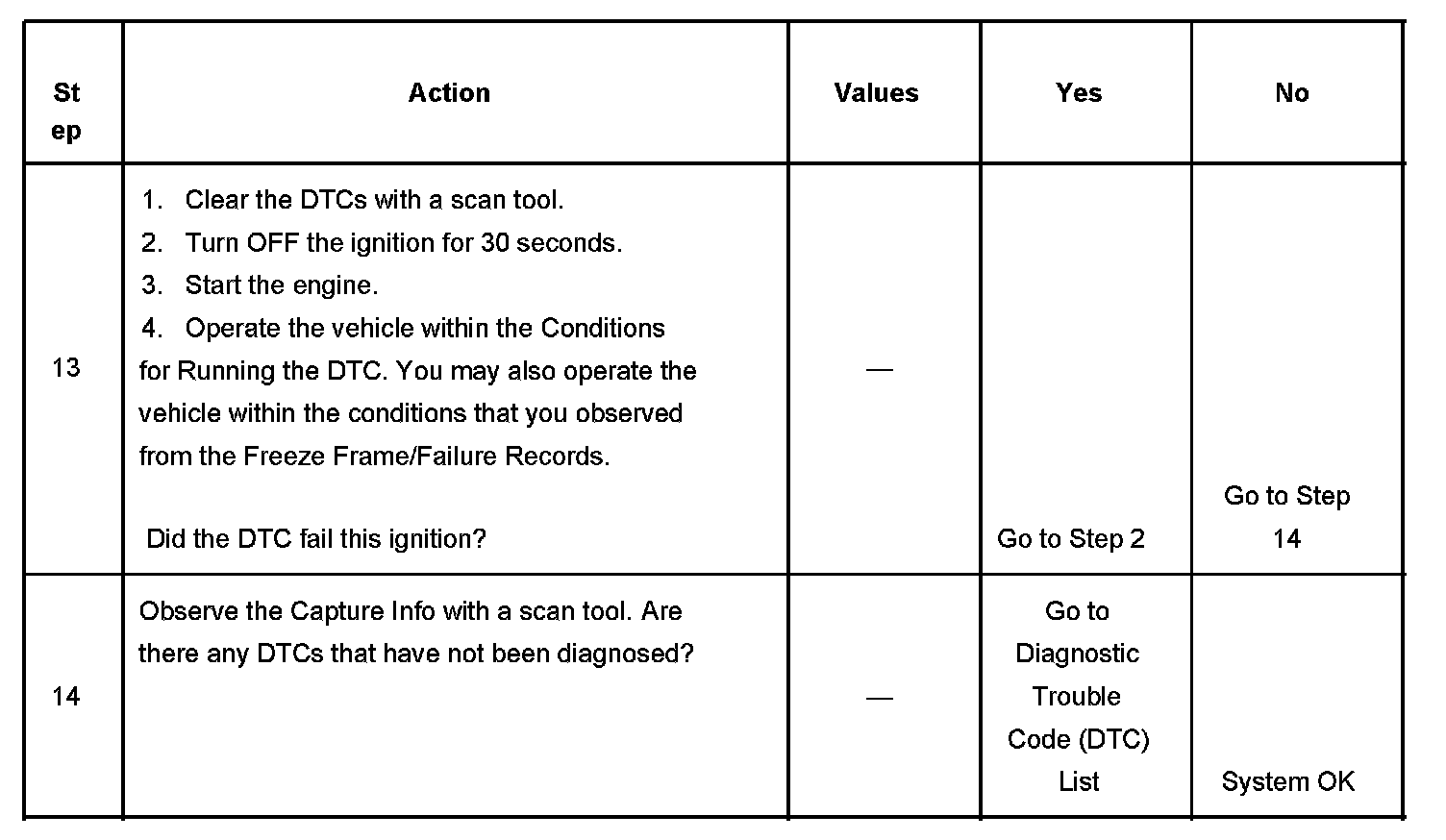 - A current DTC, Last Test Failed, clears when the diagnostic runs and passes.