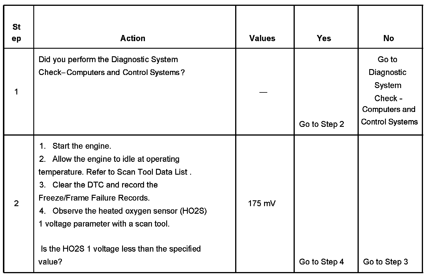 The PCM detects that the HO2S 1 voltage is less than 79 mV, for more than 51 seconds.