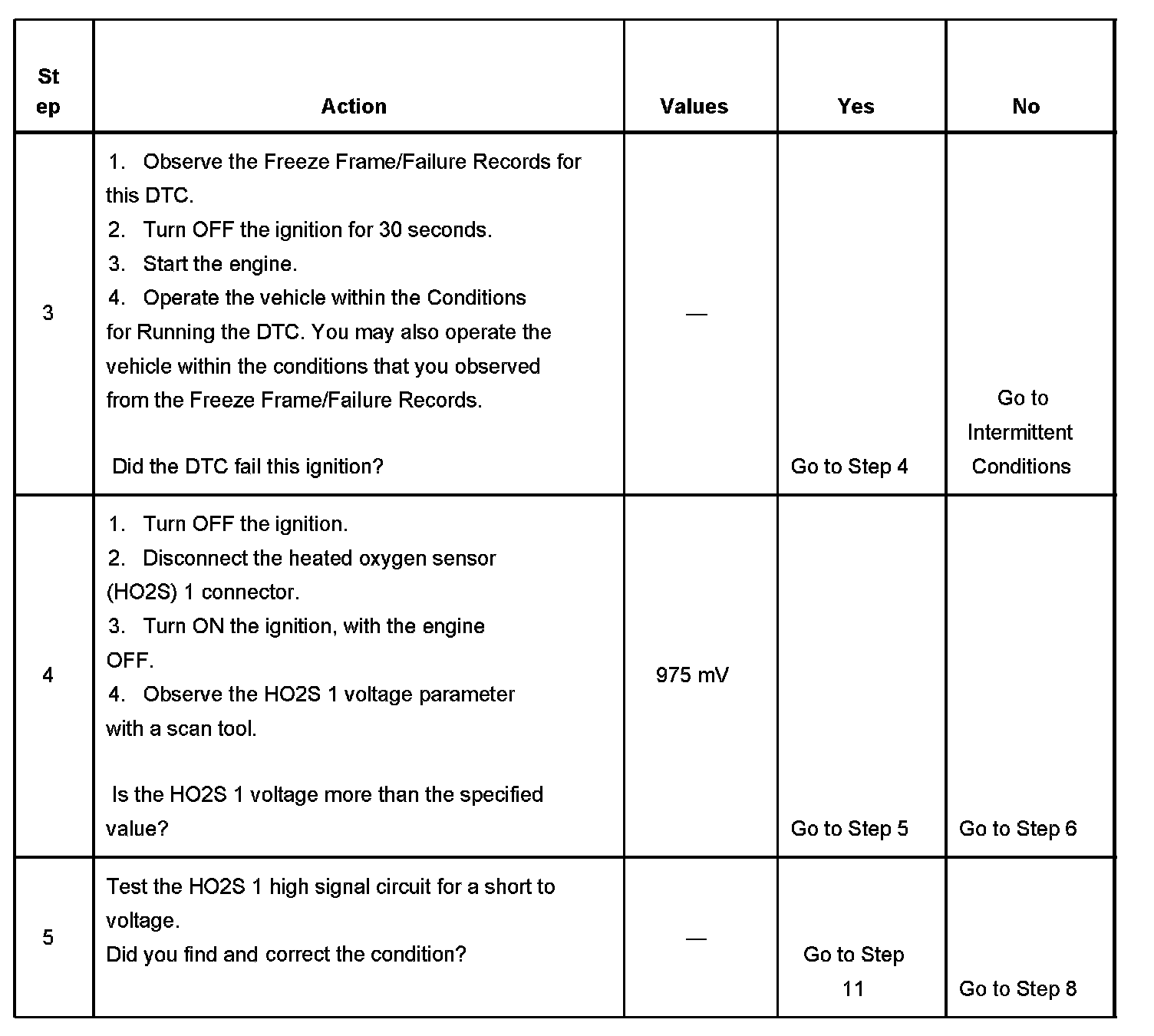 The PCM detects that the HO2S 1 voltage is more than 890 mV in closed loop for more than 75 seconds.