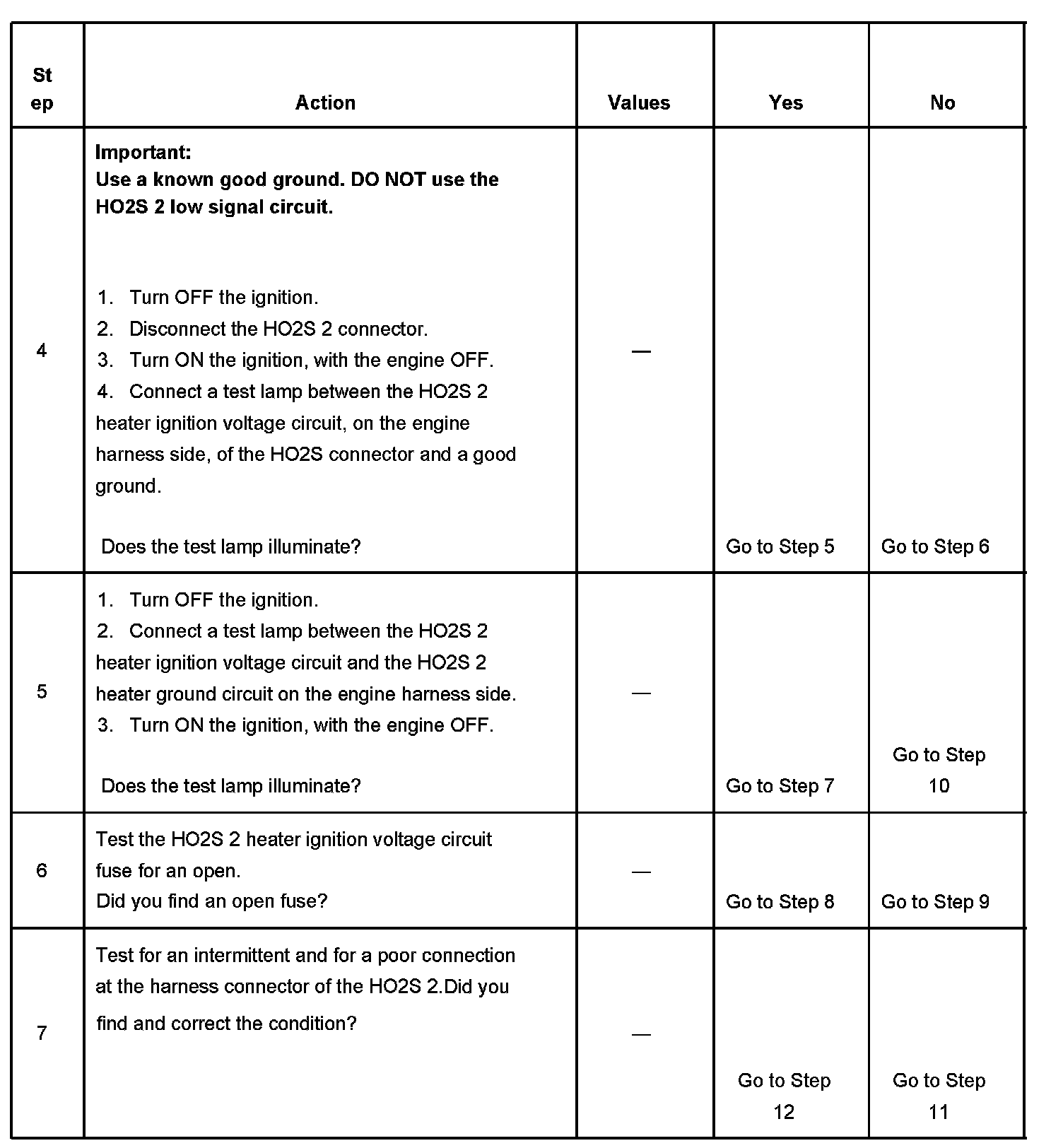 The PCM detects that the HO2S 2 voltage remains within 74 mV of the bias voltage, about 450 mV, for a longer amount of time than necessary. The amount of time ranges between 100-280 seconds depending on ECT at startup, and the average mass air flow (MAF) since startup.