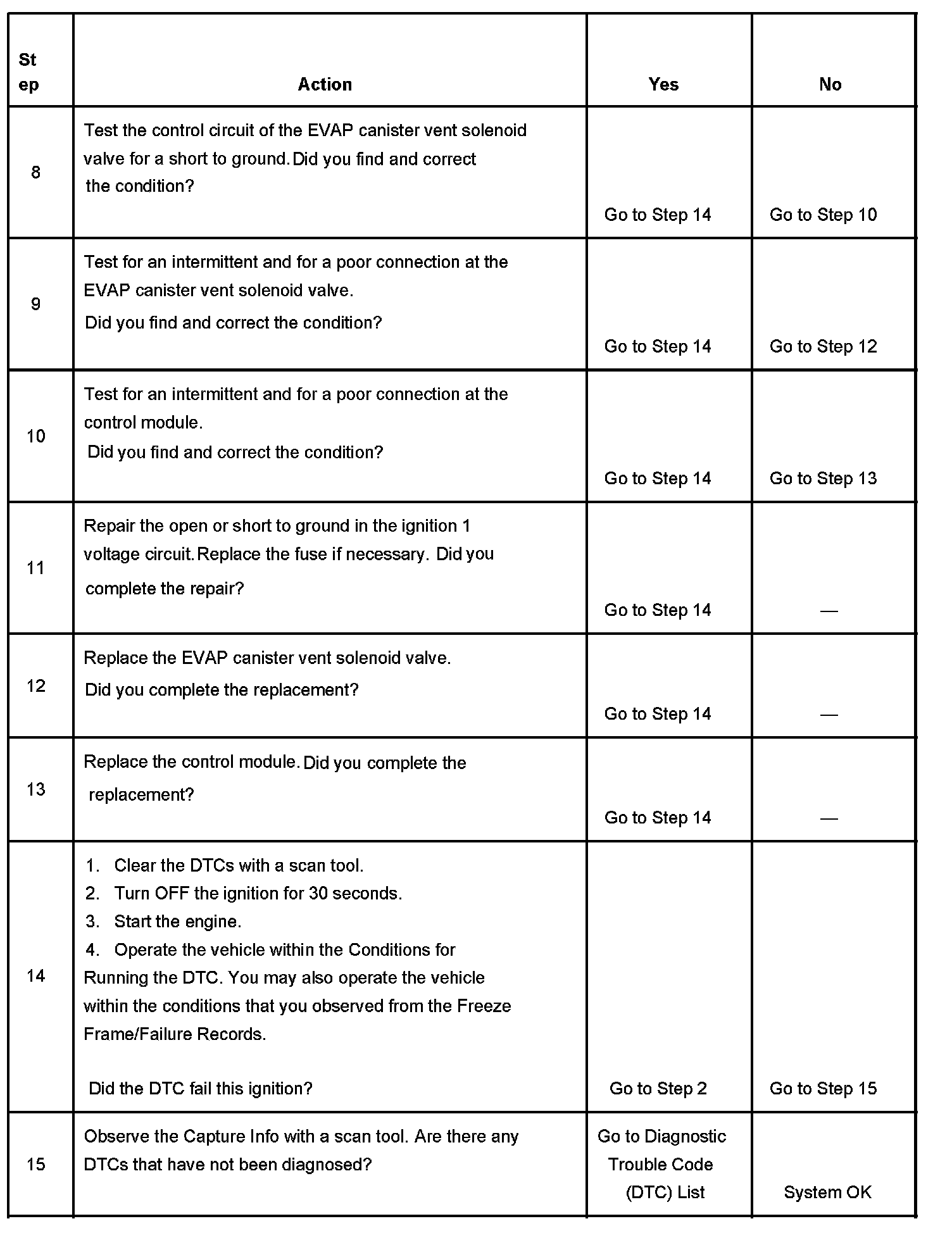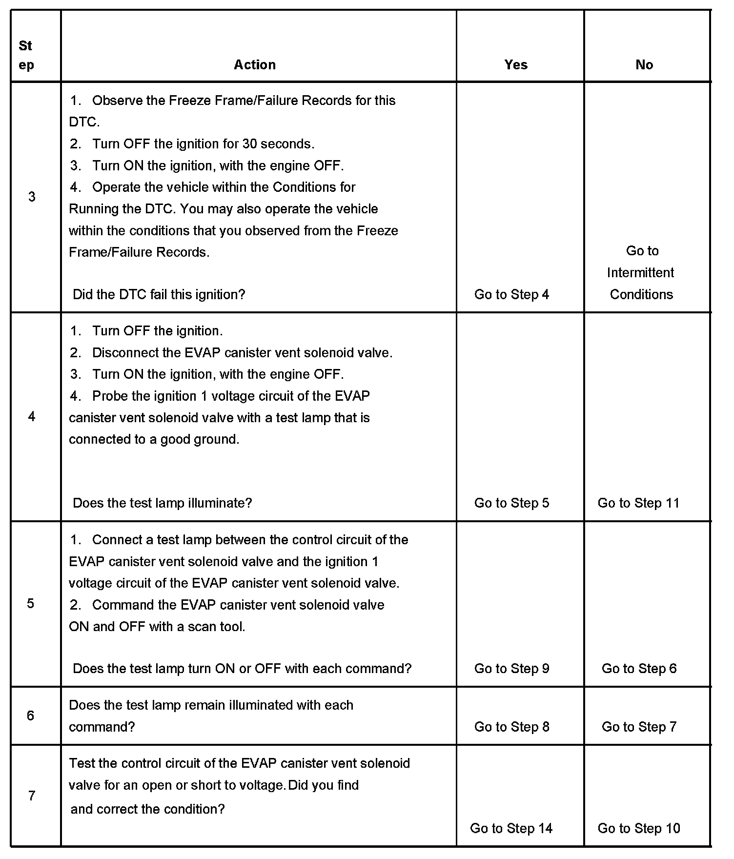 6. This step tests if the EVAP vent solenoid valve control circuit is grounded.