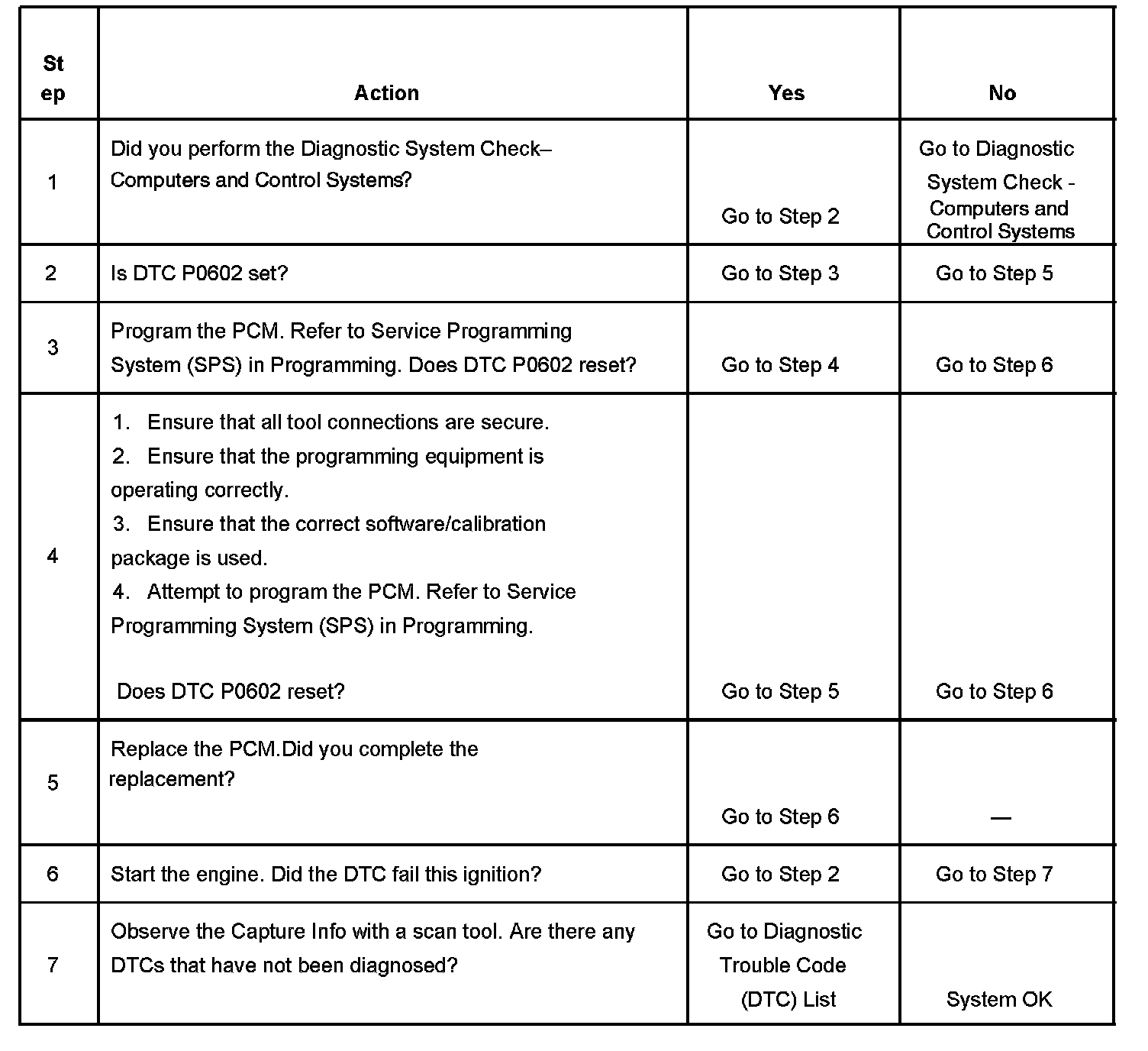 2. A DTC P0602 indicates the PCM is not programmed.