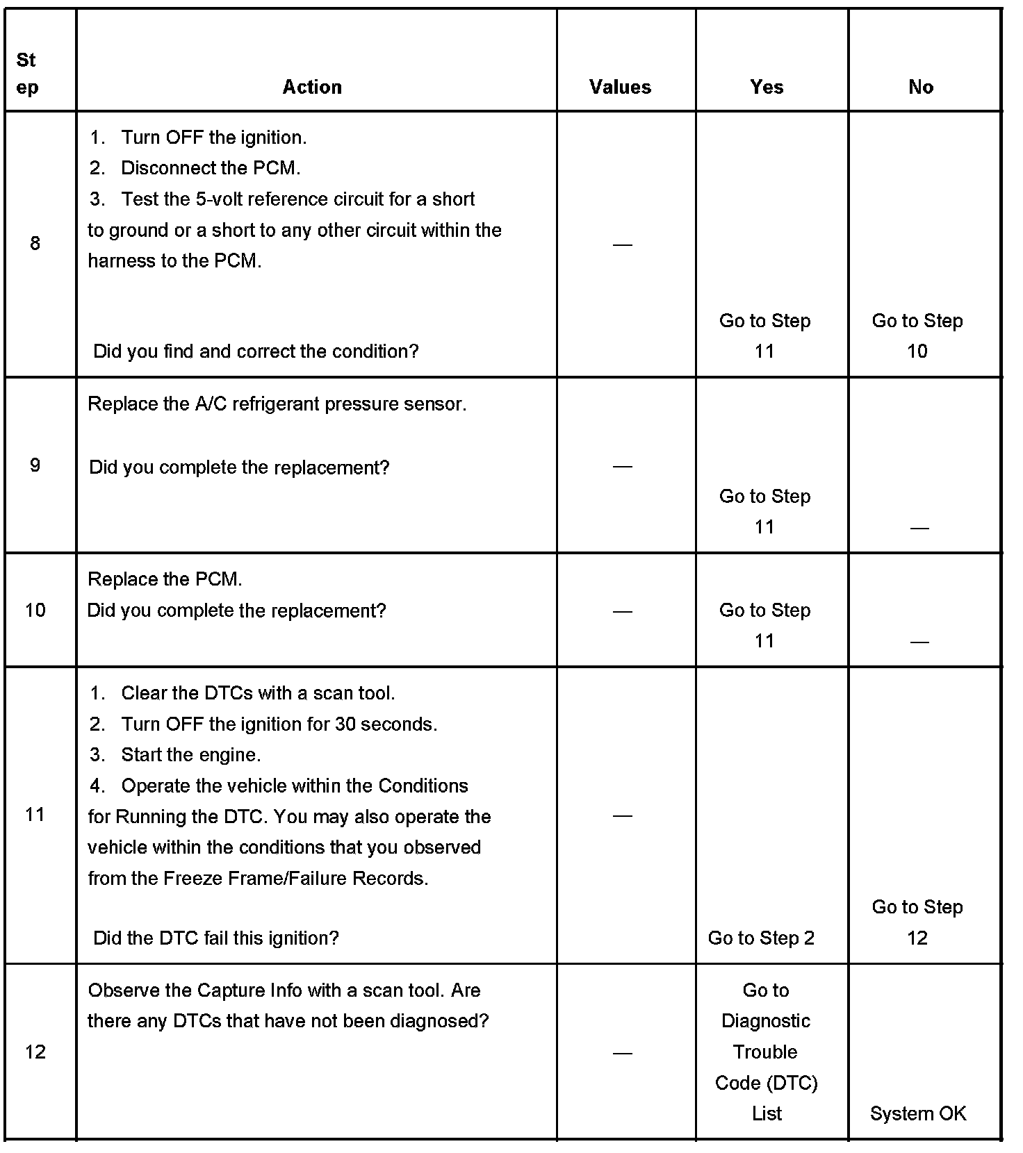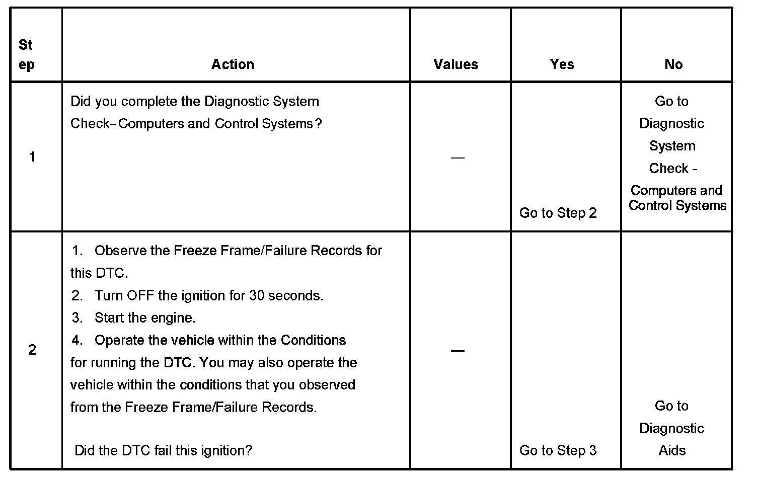 - A current DTC, Last Test Failed, clears when the diagnostic runs and passes.