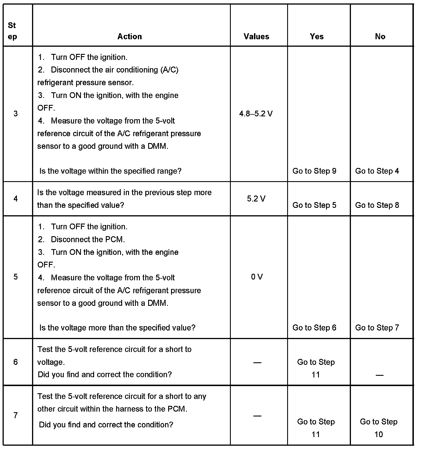 - The PCM detects a voltage out of tolerance condition on the 5-volt reference circuit.