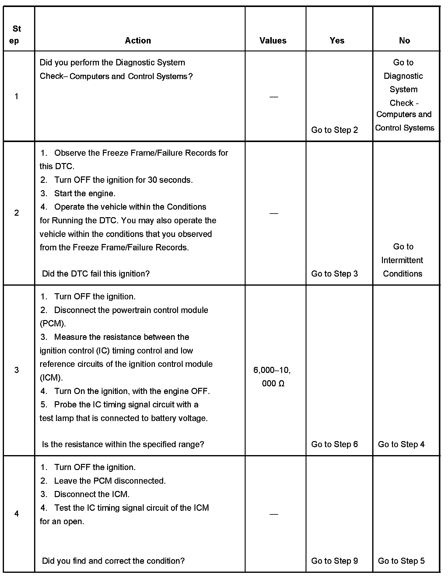 - The PCM detects an open circuit in the IC timing signal circuit.