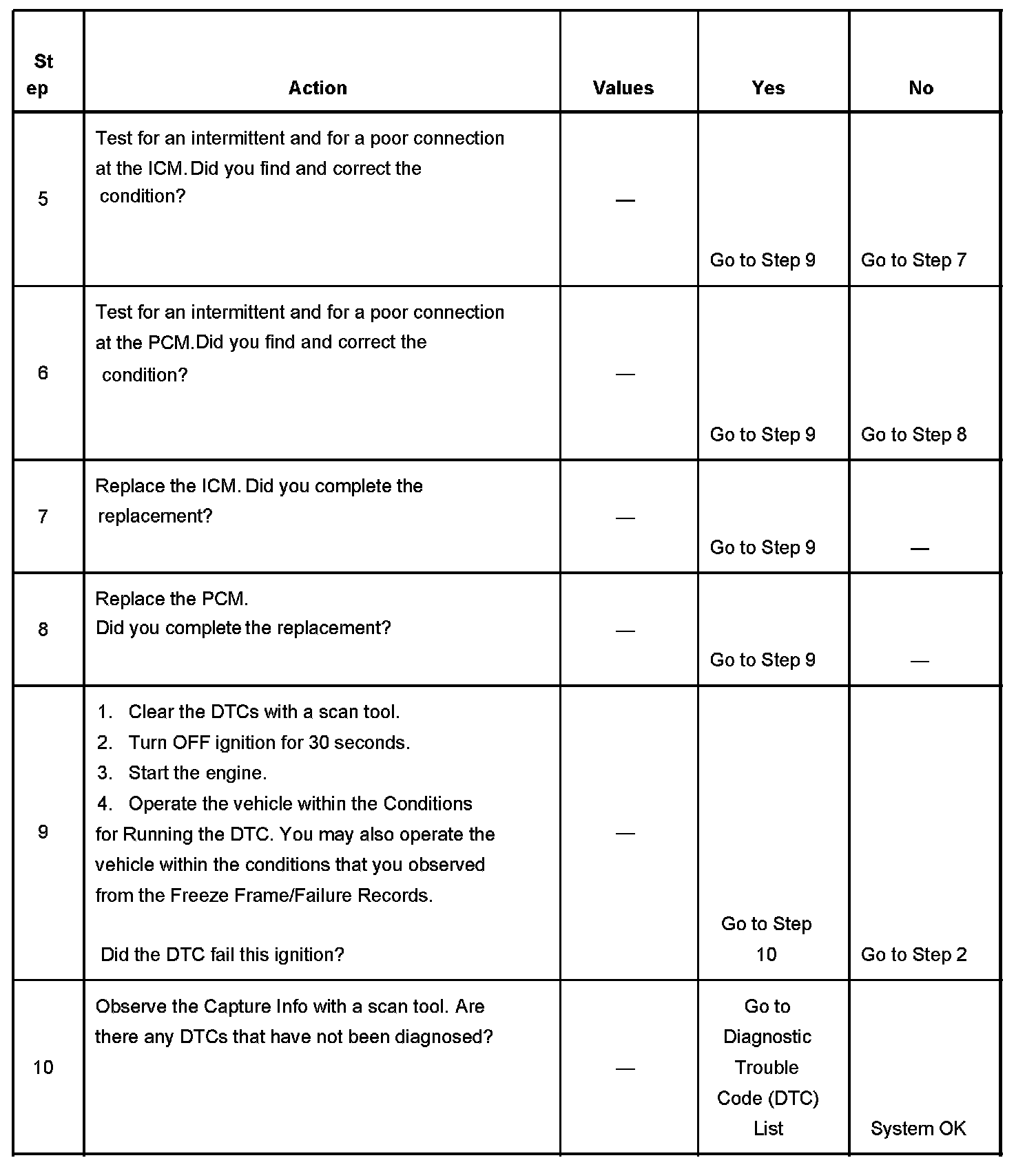 - A current DTC, Last Test Failed, clears when the diagnostic runs and passes.