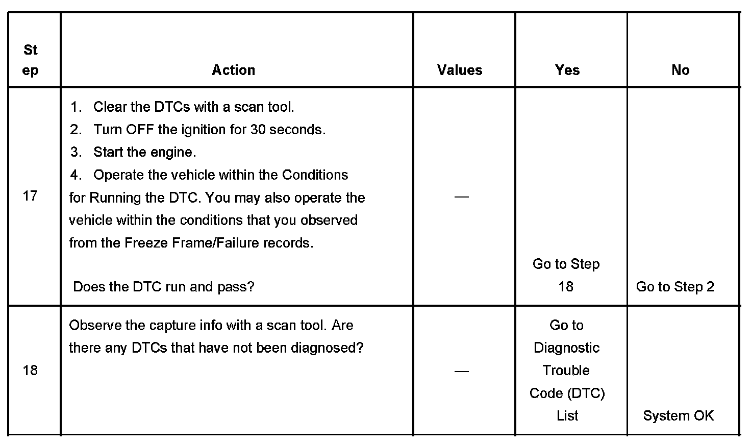 - A current DTC, Last Test Failed, clears when the diagnostic runs and passes.