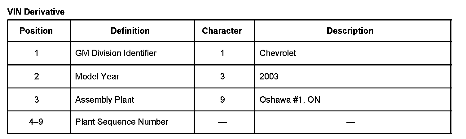 All engines and transmissions are stamped or laser etched with a partial vehicle identification number (VIN), which was derived from the complete VIN. A VIN derivative contains the following nine positions.