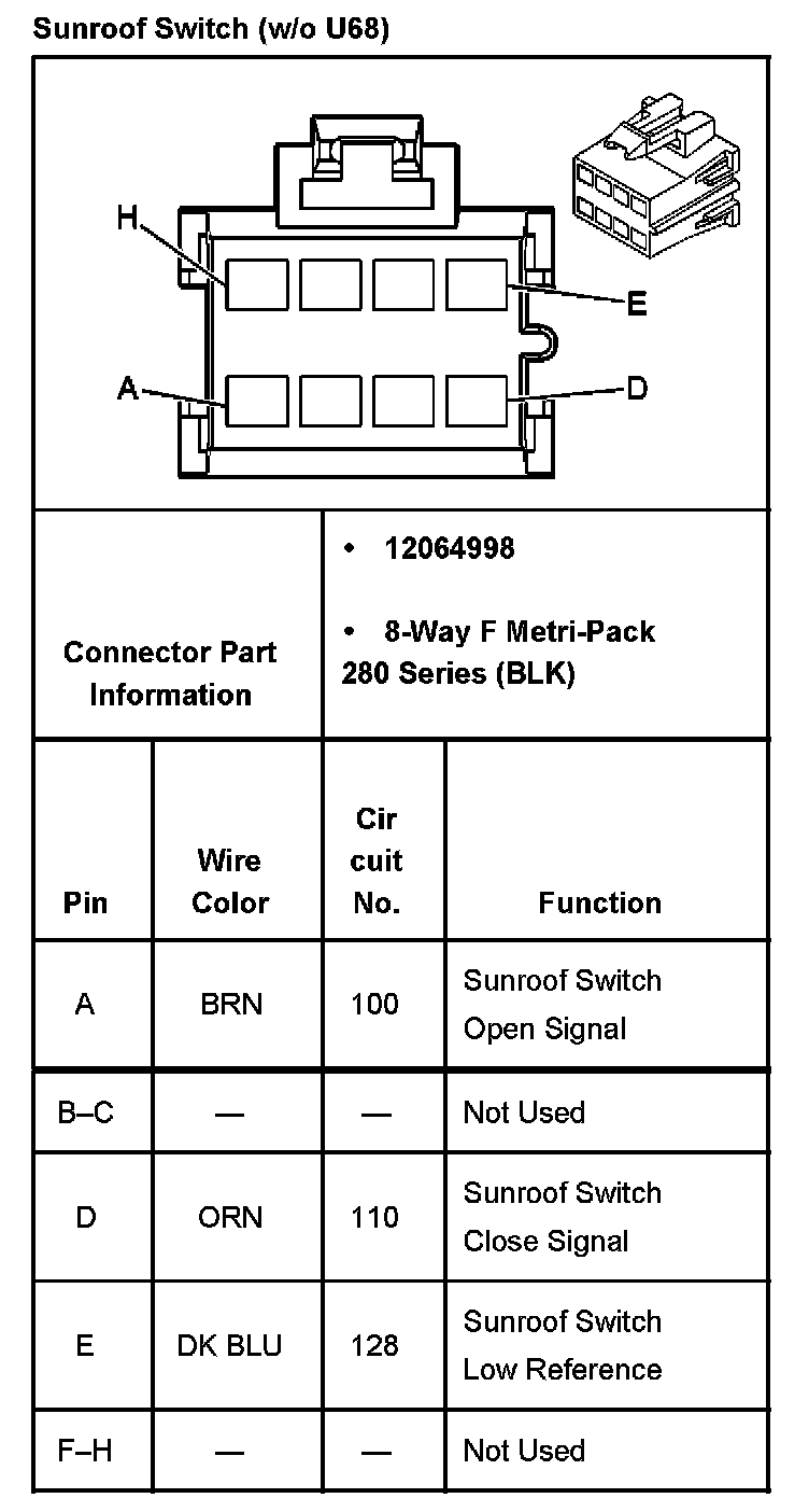 Sunroof Switch (Without RPO Code U68):