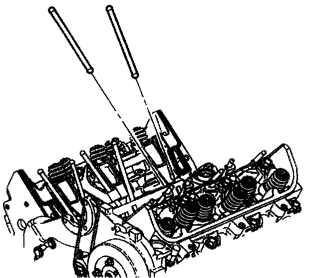 Important: Use care when removing the pushrods to ensure that they do not fall down into the lifter valley. Place the valve train parts in a rack in order to ensure that they are installed in the same location from which they were removed. 1995 and earlier engines use hardened pushrods and steel pushrod guide plates. For service of 1995 and earlier engines, only intake pushrods with purple markings and exhaust pushrods with orange markings can be used. Failure to do so may result in engine damage.