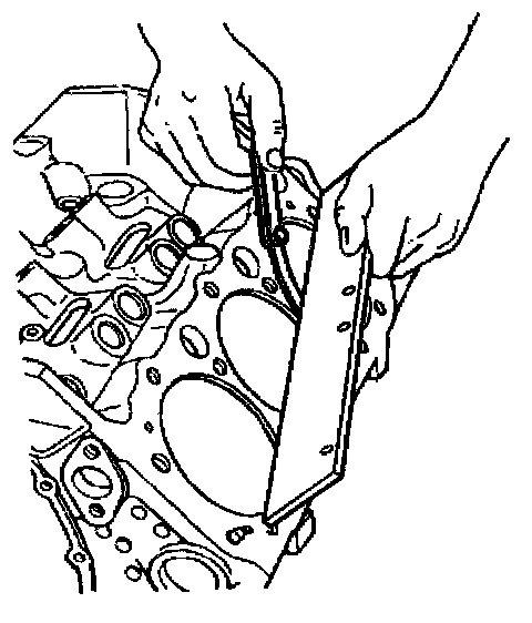9. Use a straight edge and a feeler gauge in order to test the deck surface for flatness. Carefully machine minor irregularities. Replace the block if more than 0.25 mm (0.010 inch) must be removed.