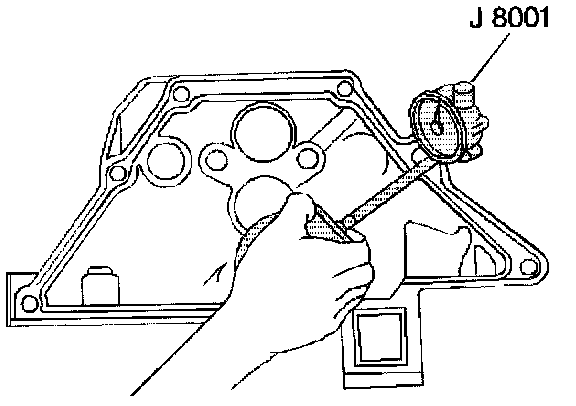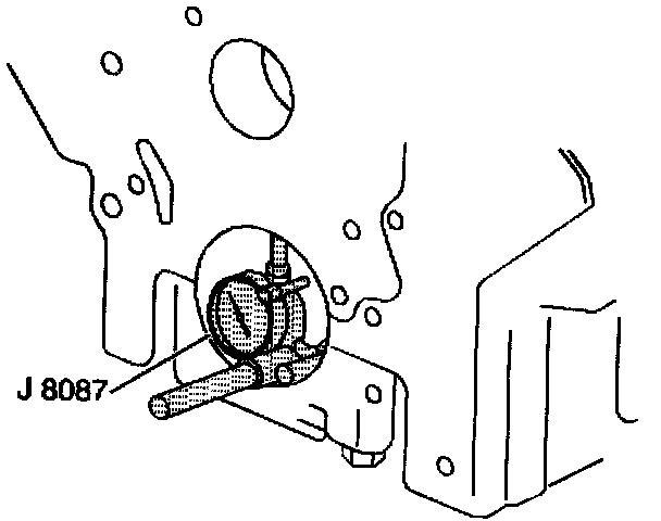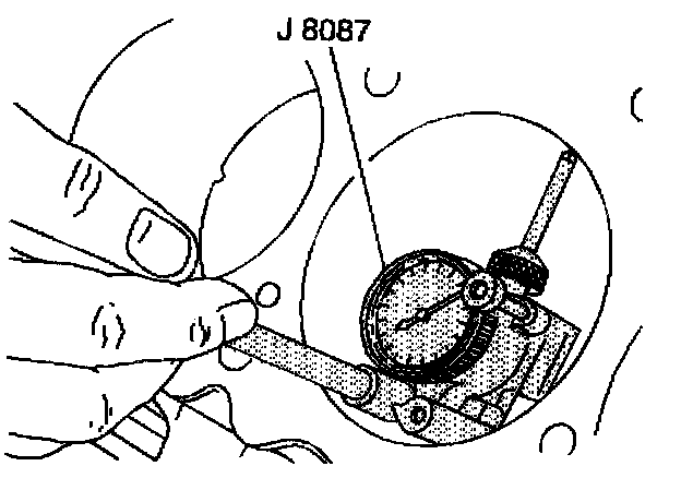 12.2. Hold the J 8001 gage plate flat against the crankshaft flange.