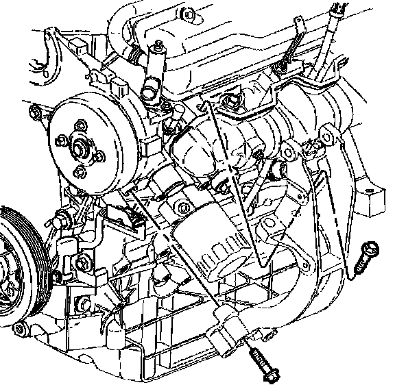 Engine Mount Strut and Air Conditioning Compressor Bracket Removal1. Remove the engine mount strut and A/C compressor bracket bolts.