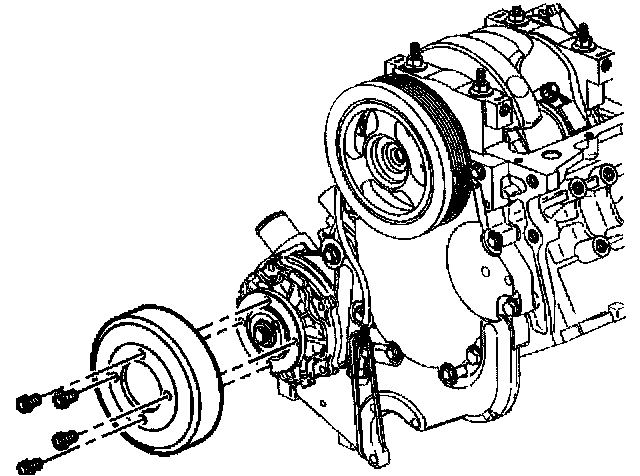 5. Install the water pump pulley bolts.
