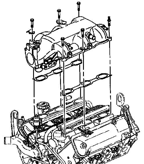 - Tighten the upper intake manifold bolts and studs to 25 Nm (18 ft. lbs.).