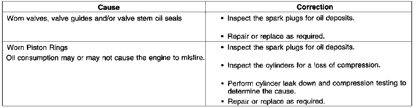 Base Engine Misfire With Excessive Oil Consumption
