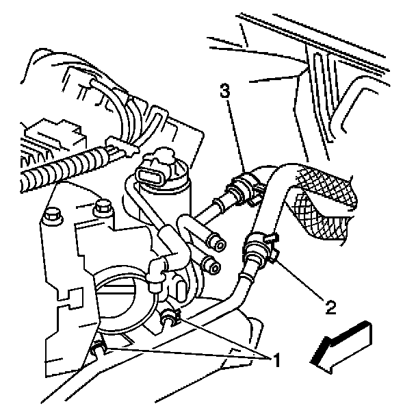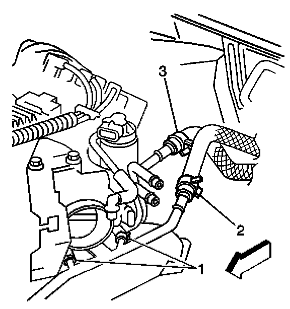 3. Disconnect the heater inlet hose (3) from the inlet pipe.