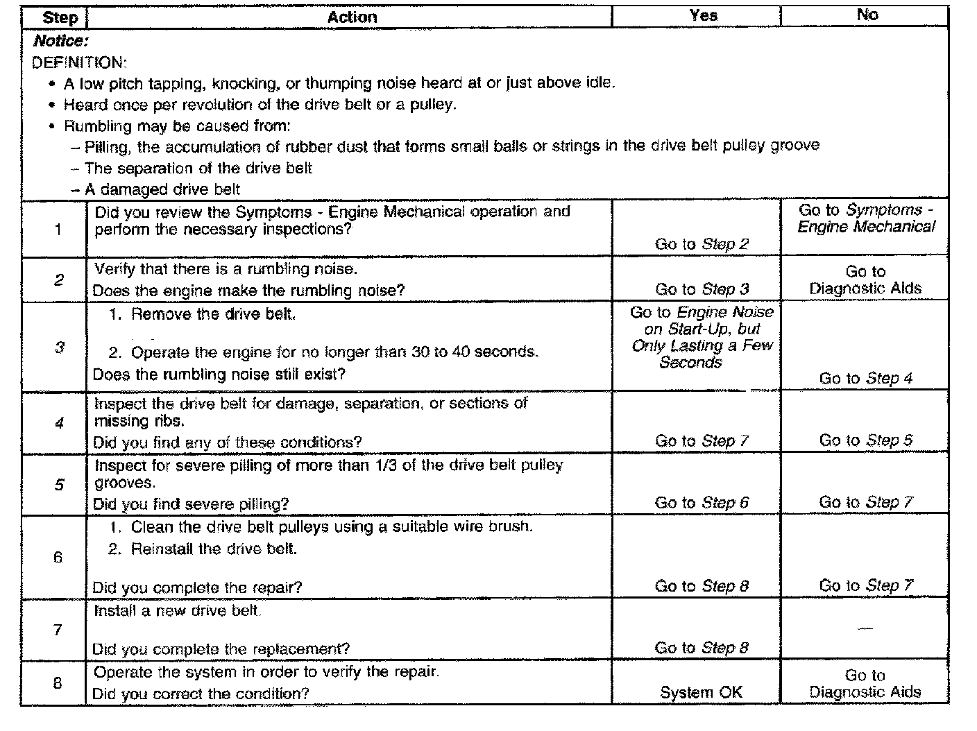 Drive Belt Rumbling DiagnosisDiagnostic Aids