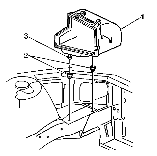 1. Install the air cleaner housing (1) to the 2 rubber grommets (2) in the engine compartment.
