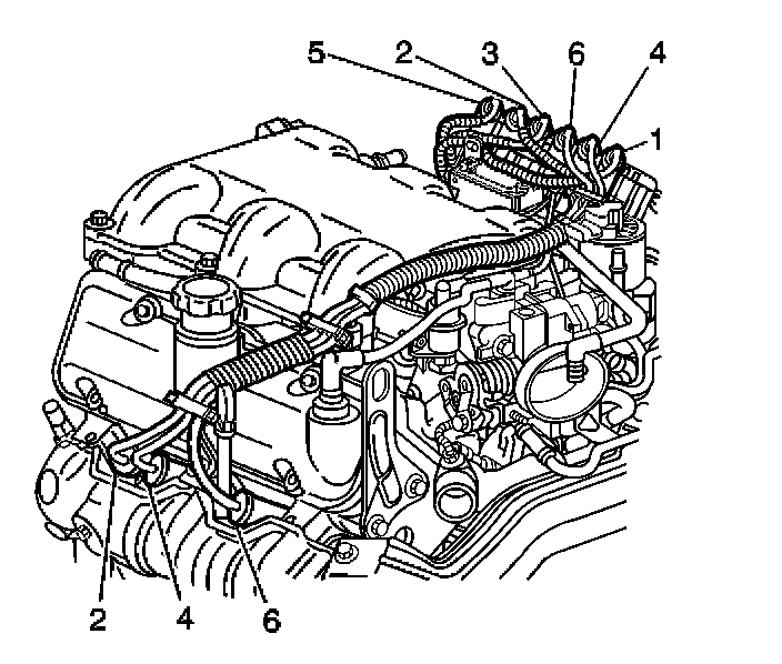 5. Install the spark plug wires 2, 4, and 6 to the engine left side spark plugs.