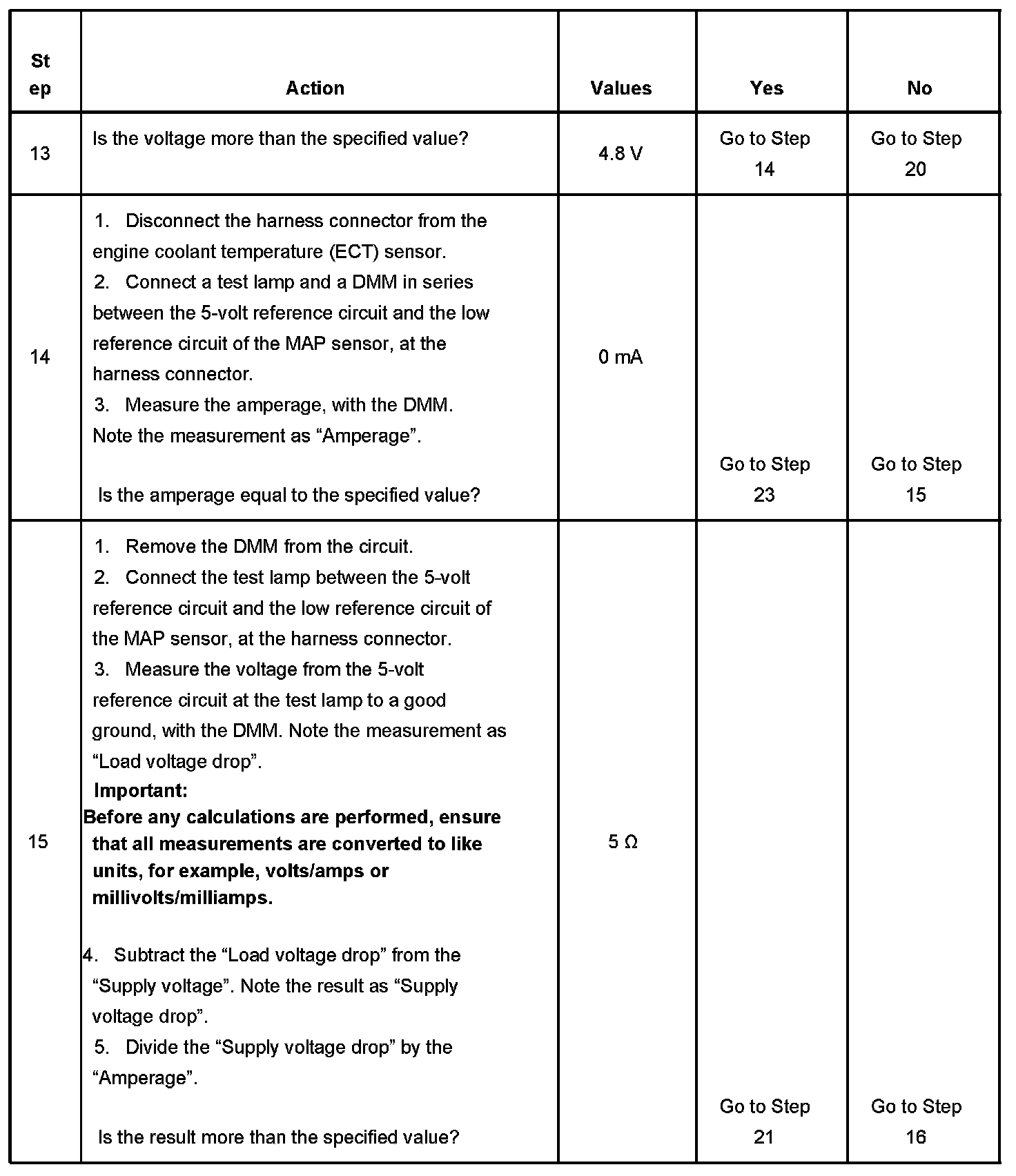 12. The measurement noted in this step will be used in subsequent steps if the measurement does not exceed the specified value.