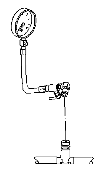 3. Connect the J 34730-1A to the fuel pressure connection. Wrap a shop towel around the fuel pressure connection while connecting the fuel pressure gauge in order to avoid spillage.