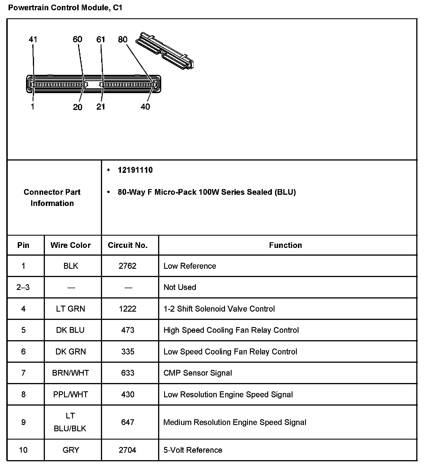 Powertrain Control Module, C1 Part 2: