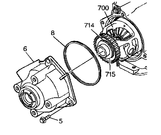 7. Remove the case extension housing (6) with the axle seal and the O-ring (8).