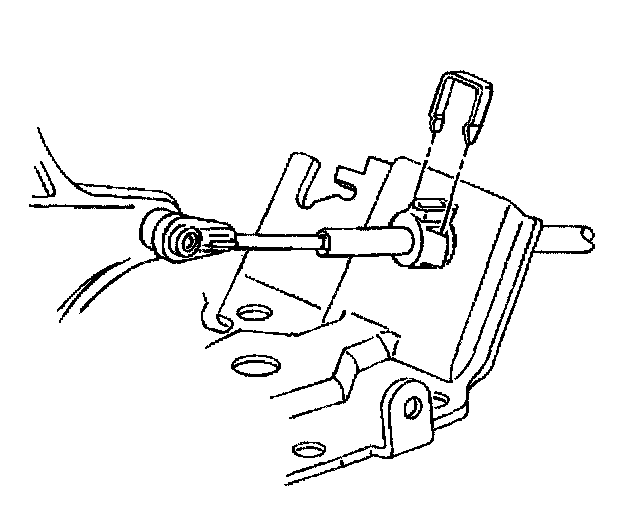 Caution: The automatic transaxle range selector cable is made out of two cable sections. After initial connection never separate the two metal couplings from one another. Integrity of the connection of the two metal couplings will be lost if separation of the two metal couplings occurs. When servicing the transaxle remove the cable at the automatic transaxle range selector lever and at the automatic transaxle range selector cable bracket. If either section of the cable needs to be replaced, replace both of the cable sections. Loss of connection integrity of the two metal couplings can cause loss of transaxle shift control which could result in personal injury.