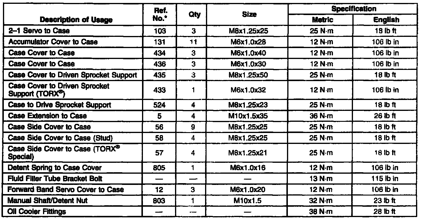 Fastener Tightening Specifications