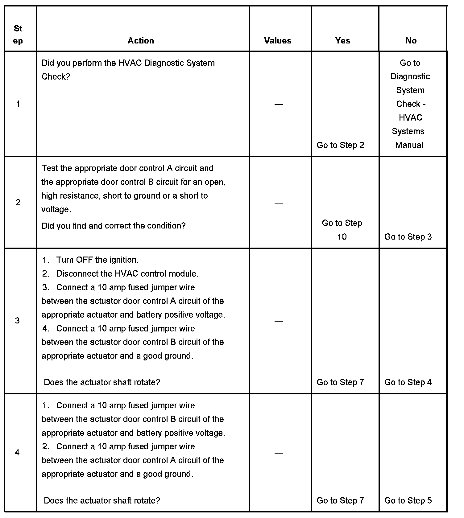 The HVAC control module does not detect any movement of the actuator after two unsuccessful attempts at moving the actuator.