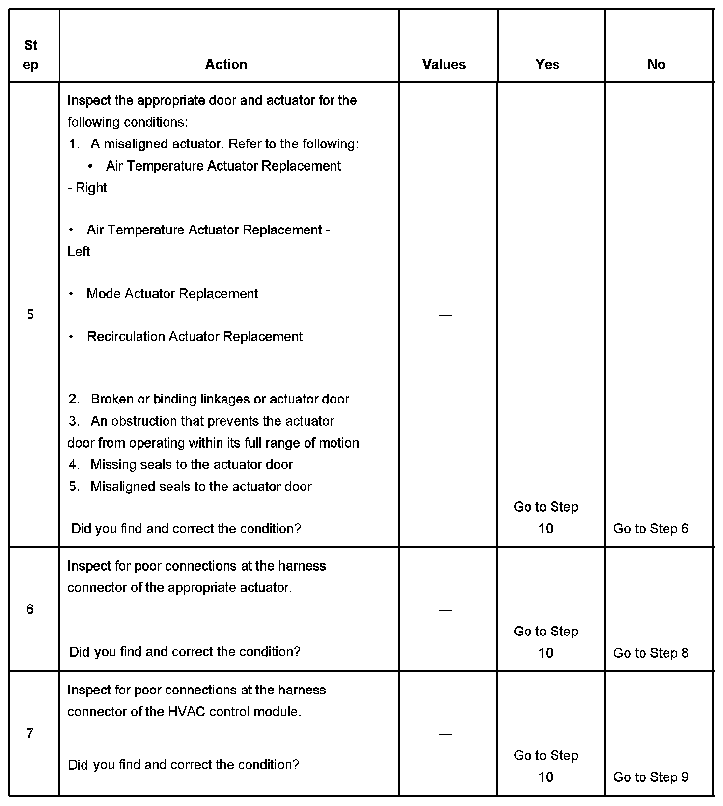 - Inspect the appropriate actuator door and actuator for the following conditions: